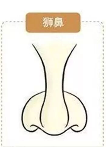 鼻根处较低,鼻子脊梁较细,鼻子或长或短,但鼻子准头特大,鼻梁略平或呈弓状,鼻子不漏鼻孔,鼻子长而鼻梁略平者,称为“草狮鼻”,易从政。鼻子短而鼻梁呈弯弓凸起者,为“石狮鼻”,属于武略军事方面的人才,易从军。狮子鼻者若身体形态呈狮子状,则大富大贵。