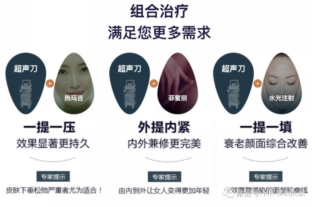 作用层次互补:可以使皮肤真皮层、皮下脂肪层和SMAS筋膜层都得到热刺激,启动胶原修复再生机制,达到全层紧致提升的作用。