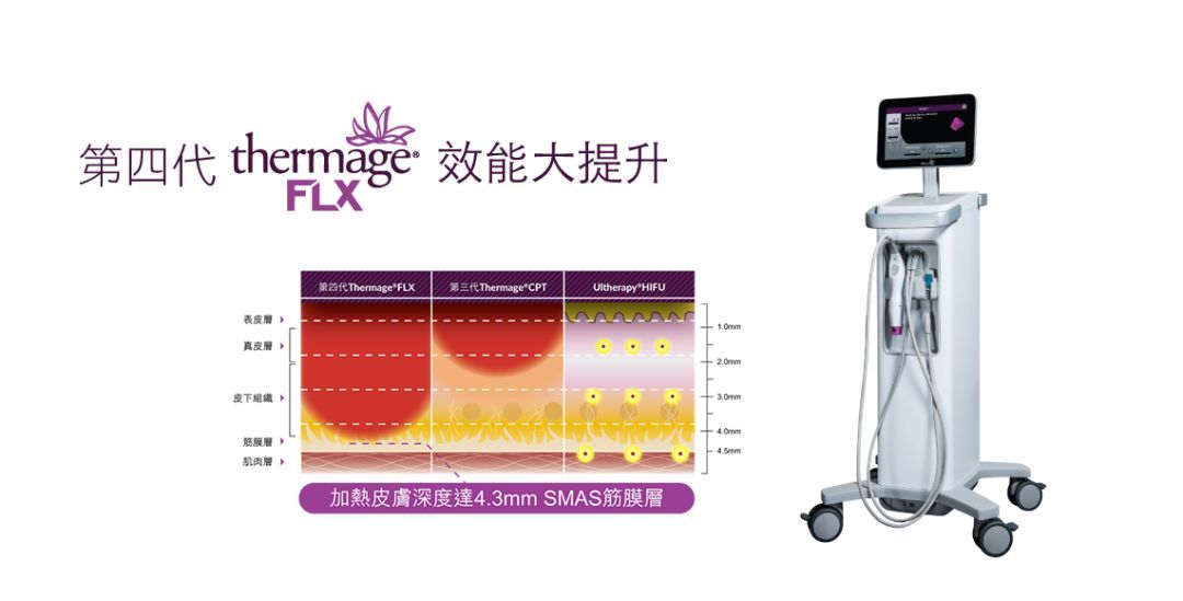 热玛吉:2.6—3.0mm,蕞深只能达到真皮层,无法达到筋膜层(SMAS)