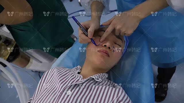 一切准备就绪后,医护人员安排张妍熙进入手术室。在手术开始之前,陈坦医师先为她进行脸部画线标记,然后细致地为她施行面部线雕操作。